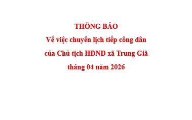 plus-circle Created with Sketch Beta. Aa Thông báo chuyển lịch tiếp công dân của Chủ tịch HĐND xã tháng 04/2026 10:20 20/04/2026 Thông báo chuyển lịch tiếp công dân của Chủ tịch HĐND xã tháng 04/2026